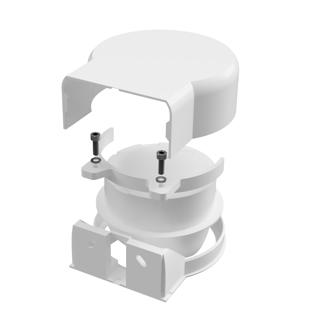Dieser Adapter aus PETG ist für die MOBOTIX p25/26 und c25/26 Innenraumkameras konzipiert. Mit ihm kann die Kamera ohne weiteren Adapter an der Wand montiert werden.