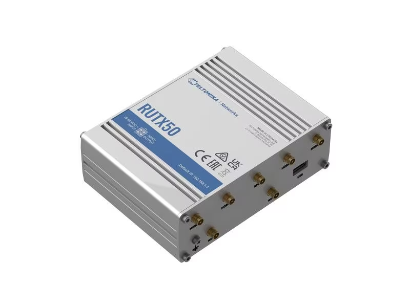 RUTX50 ist Ihr zukunftssicherer Multi-Netzwerk-Industrie Router, der 5G-Mobilkommunikation für Hochgeschwindigkeits- und datenintensive Anwendungen bietet. 5G-Dual-SIM-Mobilfunkkommunikation kombiniert mit 5 Gigabit-Ethernet-Ports und Dual-Band-Wi-Fi ermöglicht eine zuverlässige Datenübertragung mit extrem niedriger Latenz. Die Leistungsfähigkeit der 5G-Technologie in Kombination mit einer breiten Palette von Schnittstellen und industriellen Hardware-Funktionen gewährleistet die Anpassungsfähigkeit für zukünftige Upgrades und Erweiterungen. RUTX50 ist mit dem RutOS ausgestattet, das erweiterte Sicherheitsfunktionen und spezielle Industrieprotokolle für eine Vielzahl professioneller Anwendungsszenarien bietet und mit unserem Remote Management System (RMS) für optimierte Fernverwaltungs- und Überwachungsfunktionen für grosse Geräteflotten kompatibel ist.